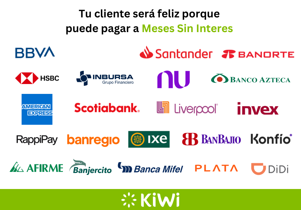 Con KiWi, puedes ofrecer pagos a plazos con tarjetas de crédito y dejar que tus clientes elijan cómo pagar: en 3, 6, 9, ó 12 cómodas mensualidades.