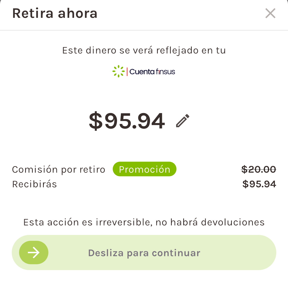 Puedes realizar retiros en cualquier momento. Solo toma en cuenta que el corte diario de operaciones es a las 11:00 PM, incluyendo fines de semana.